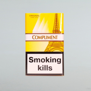 Сигарети Compliment Yellow Original – це сигарети формату King Size в жовтій пачці з дизайном, що нагадує Ейфелеву вежу. Вони належать до сегмента середньої або легкої міцності та відомі як доступна марка для щоденного куріння.